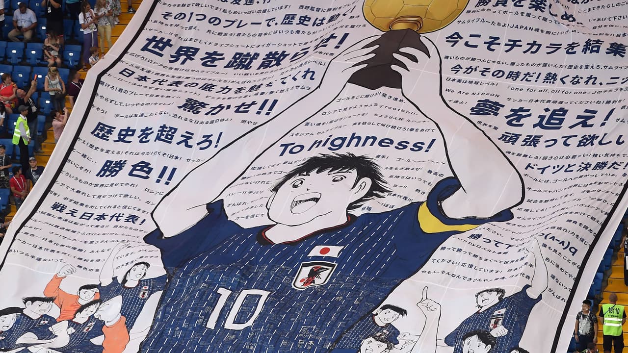 Y no sólo por la ilusión de ver a otro gigante caer ante un equipo aparentemente débil, ni por los cinco goles que se vieron en el partido. También porque los aficionados japoneses desplegaron una bandera con uno de los ídolos de la infancia de millones de personas en el mundo.
