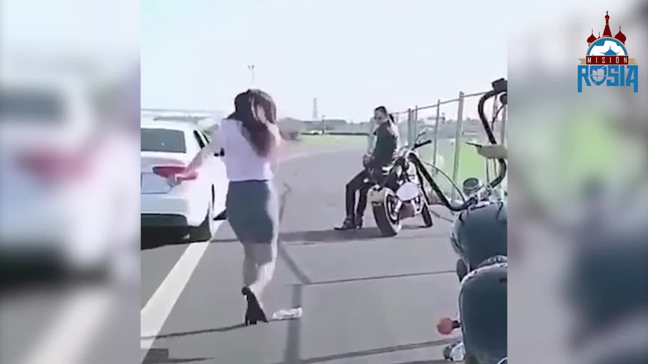 Un joven en un automóvil tiró una botella a la calle y una chava asiática se lo regresó con un espectacular chanfle.