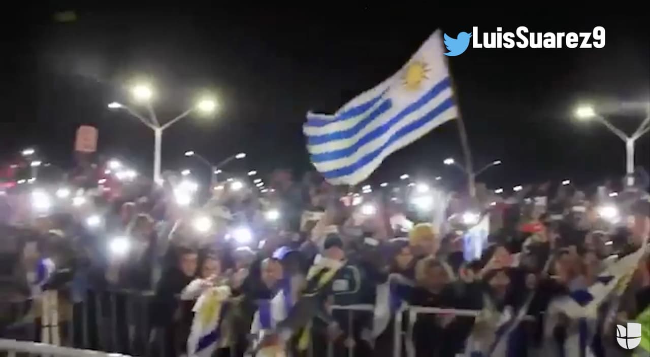 Luis Suárez compartió en sus redes sociales un video en el que se aprecia a cientos de aficionados que se dieron cita en el aeropuerto de Montevideo para aplaudir y ovacionar a sus jugadores.