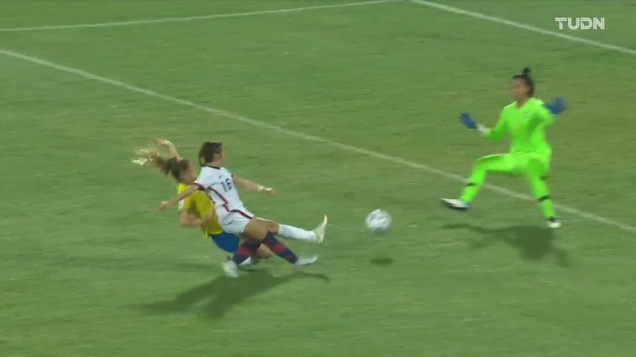 La ventaja no duró mucho para Estados Unidos, pues la arquera estadounidense Victoria Safradin no pudo medir bien el balón y le regaló el empate a Ana Carolina, quien impactó desde fuera del área sin tentarse el corazón y así Brasil consiguió el 1-1.