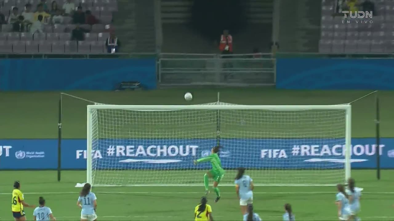 Colombia trató de empatar el juego con una buena acción de Natalia Hernández, que disparó y puso a temblar el arco rival.