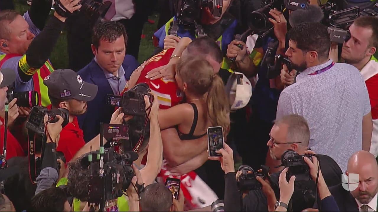 La famosa super estrella estrechó al receptor de los Chiefs, además de felicitarlo en un partido que tuvo drama hasta el final.