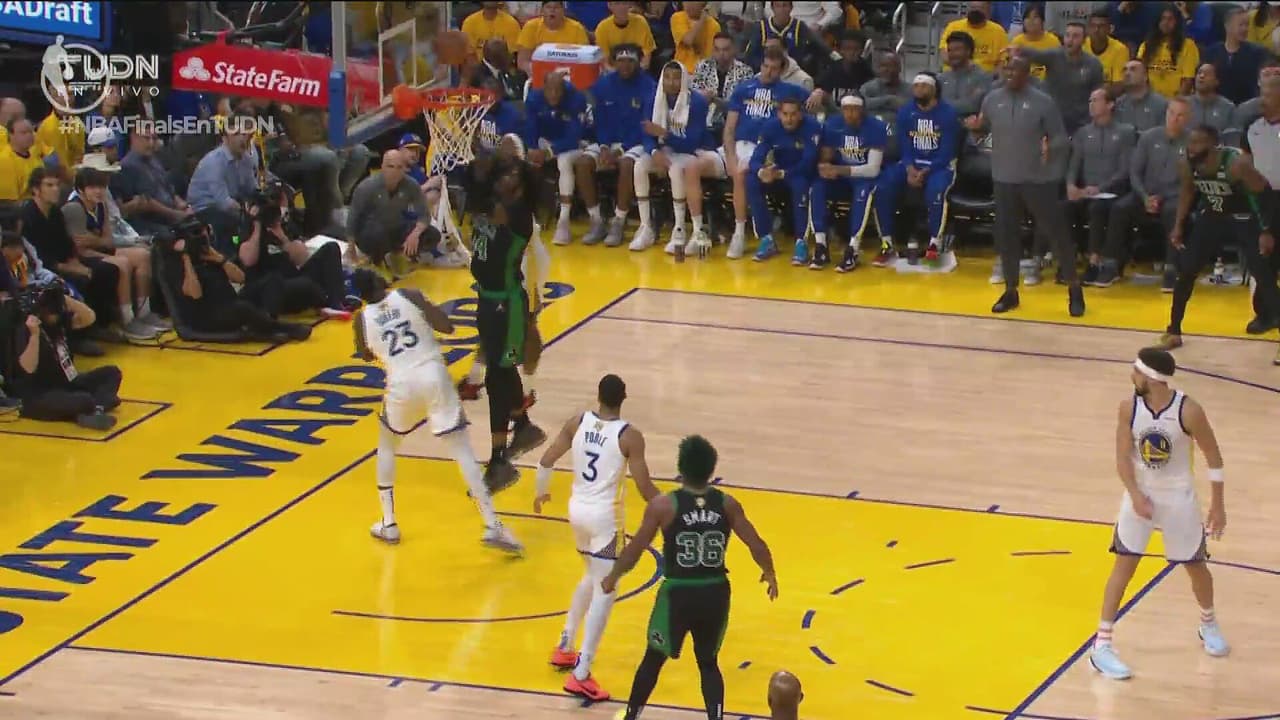 Marcus estaba acorralado de espalda al aro y encontró a Robert para los puntos de Celtics.