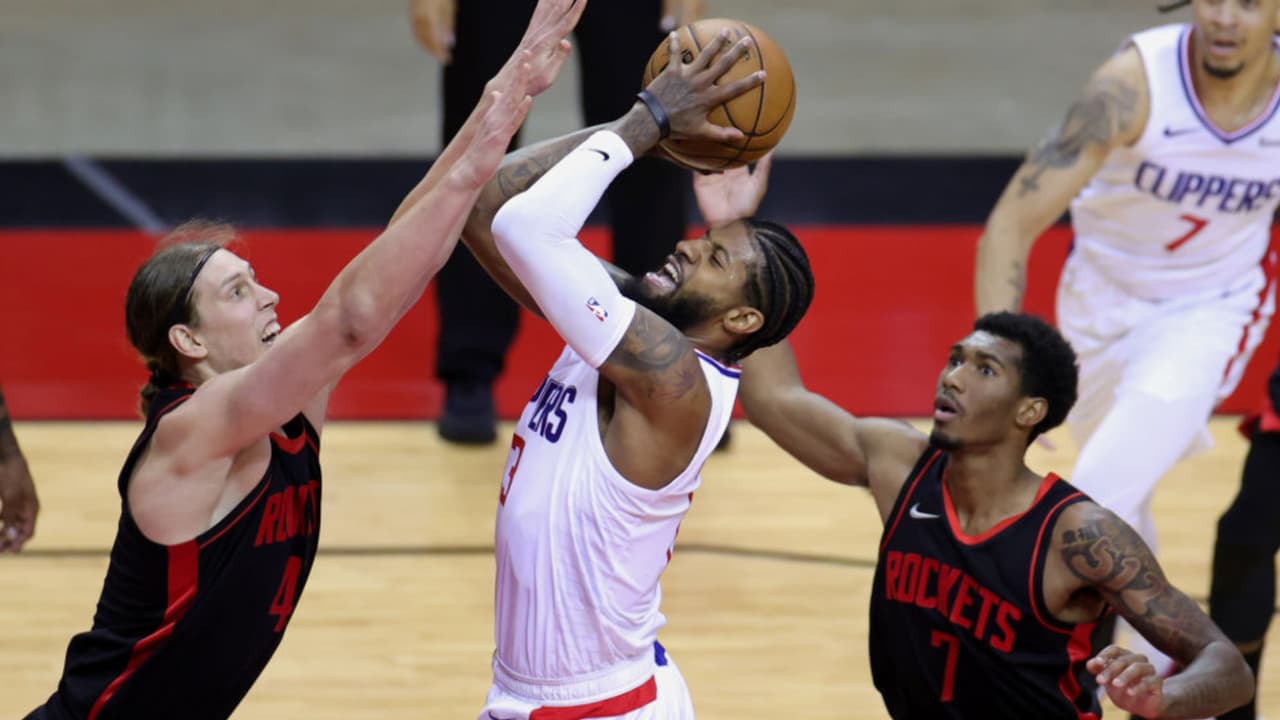 El alero Paul George aportó un doble-doble de 33 puntos con 14 rebotes y Los Angeles Clippers superaron un tercer periodo con solo 11 tantos anotados en el partido que ganaron a domicilio por 104-109 a Houston Rockets.
