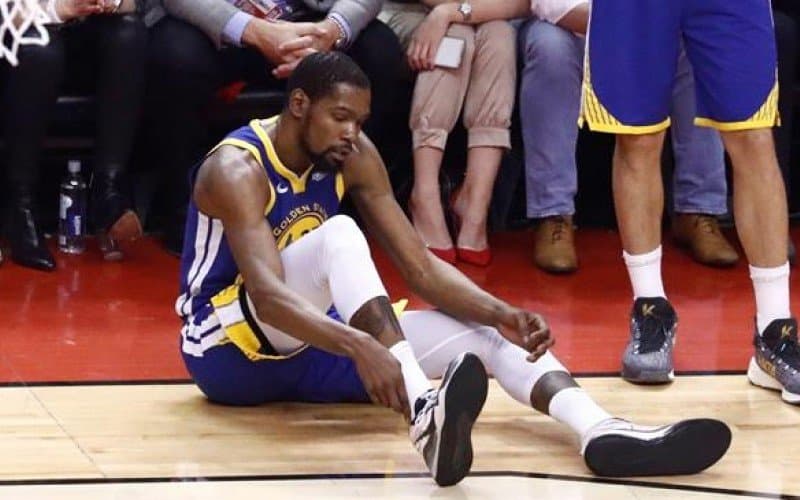 Con poco menos de 10 minutos restando en el Juego 5, el lunes pasado, Durant trató de superar a Serge Ibaka, que era quien lo marcaba de los Toronto Raptors. Luego de un crossover, KD se quedó ahí, paralizado, en seco. Imaginen el dolor, la molestia que el balón le importó un carajo. Esto derivó en un rompimiento de Toronto mientras Durant se desplomaba de ese lado de la duela, tocándose el tobillo.
