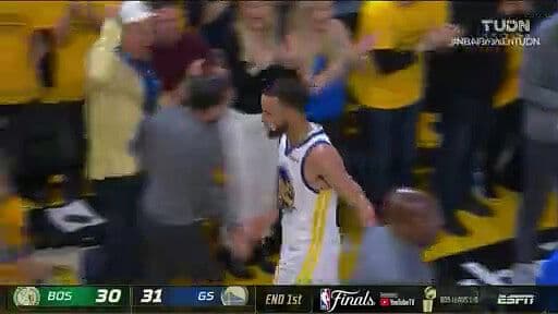 Stephen tomó el último tiro del primer periodo para darle la ventaja a los Warriors 31-30 sobre Celtics.