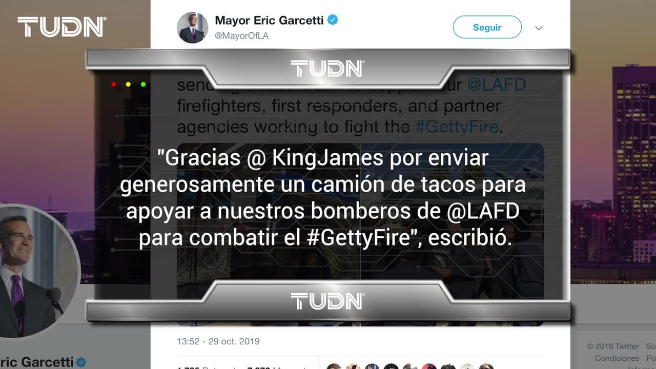 "Gracias, @ KingJames, por enviar generosamente un camión de tacos para apoyar a nuestros bomberos de @LAFD, socorristas y agencias asociadas que trabajan para combatir el #GettyFire", escribió.