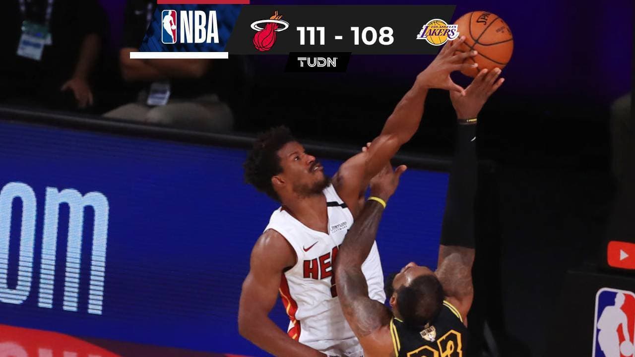 Lakers cayó 108-111 frente al Heat, en un partido que se definió en los últimos 24 segundos. LeBron James contabilizó 40 puntos, 13 rebotes y siete asistencias, mientras Anthony Davis tuvo 28 puntos, 12 rebotes y tres asistencias. Un desempeño brutal pero insuficiente para darle el triunfo a Lakers.