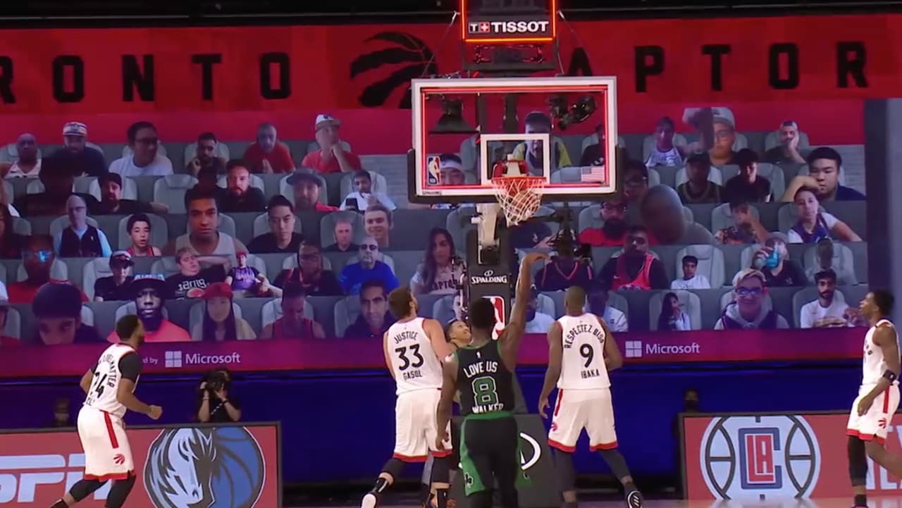 El equipo de Boston mejoró a 4-1 la marca contra los Raptors esta temporada (ningún otro equipo ha vencido a los campeones reinantes de la NBA más de dos veces) y sus dos encuentros en la burbuja de reinicios de la NBA en Walt Disney World han sido también para los Celtics.