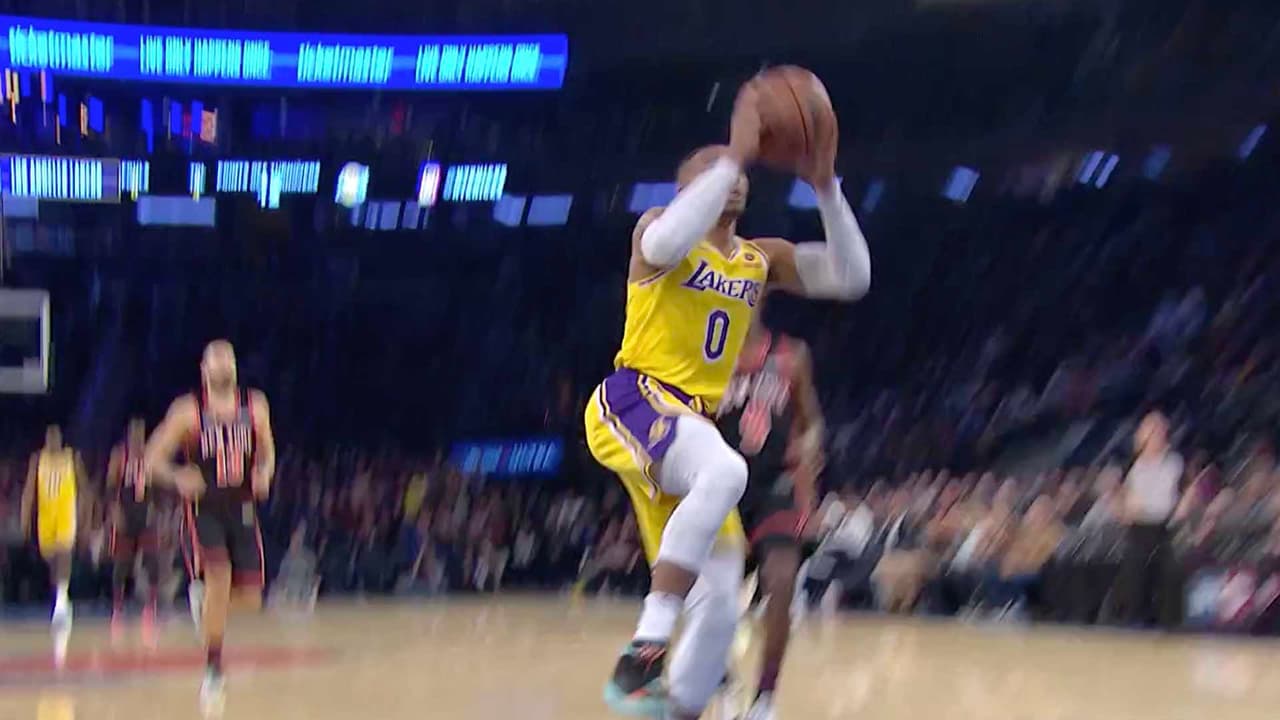 Russell Westbrook tuvo 31 puntos, 13 rebotes y 10 asistencias, con 18 unidades en un increíble tercer cuarto que permitió que los Lakers empataran el encuentro. Pero sin James en el encuentro, Anthony Davis batallando con una dolencia y Carmelo Anthony sin sobresalir en su antigua casa, los Lakers nunca pudieron tomar la ventaja.