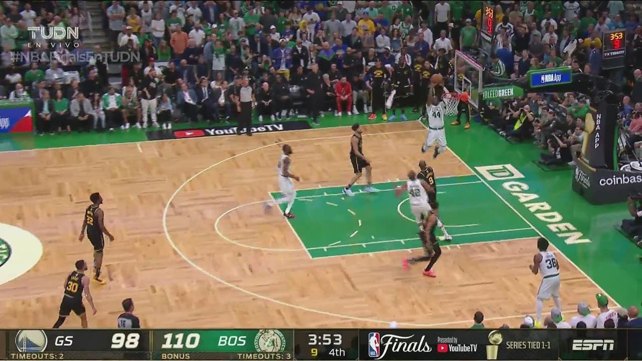 Al Horford pone la bola en el aire y Robert Williams la baja directo al aro de Golden State.