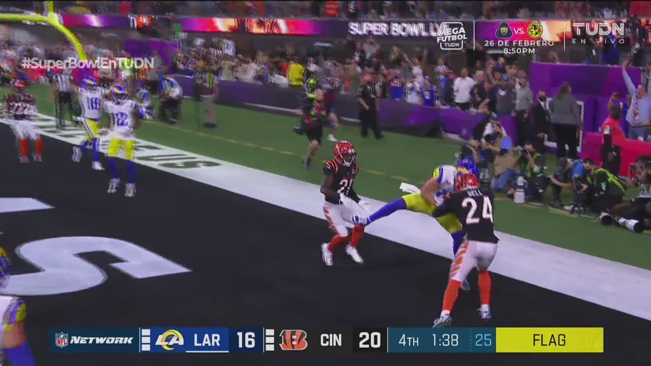 ¡Vaya golpe! Cooper Kupp se lleva tremendo impacto y no vale el TD