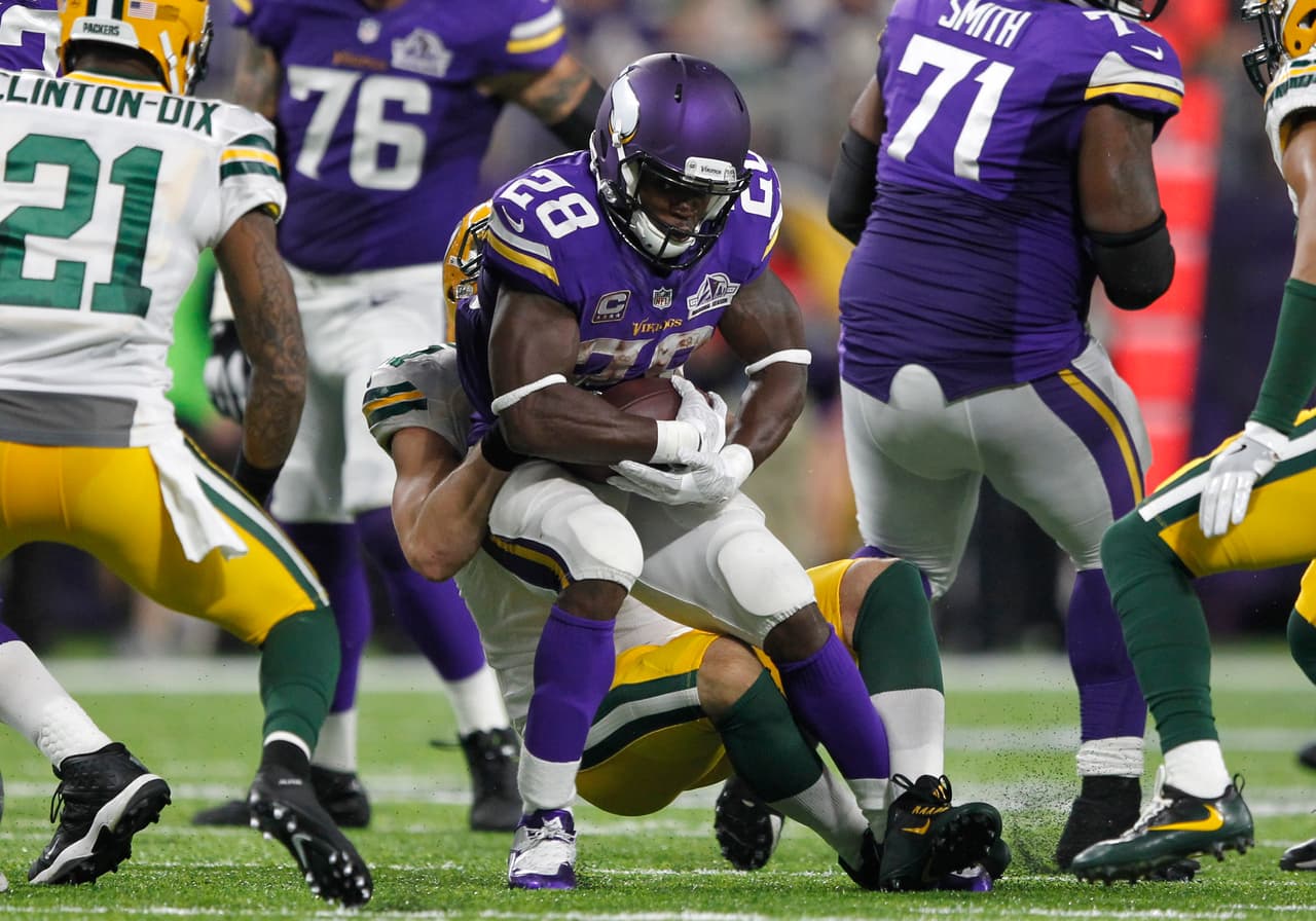 Peterson se lesionó en la victoria del domingo por la noche sobre Green Bay, y necesitó ser asistido para salir del campo después de que su rodilla se torció mientras era derribado al final de un acarreo. AP sólo corrió para 50 yardas en 31 intentos esta campaña.
