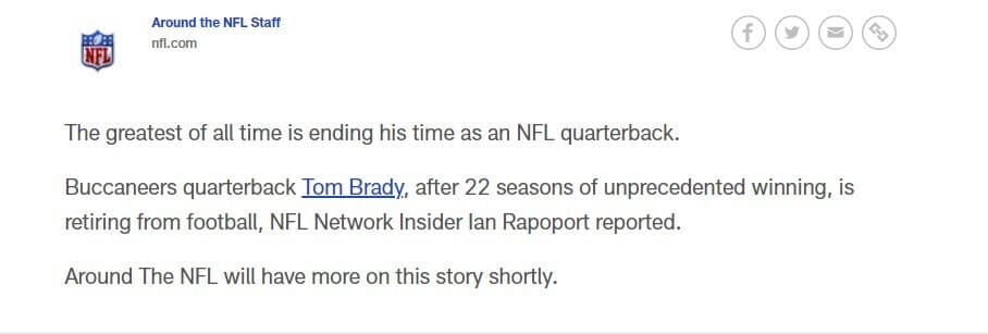Además llama la atención que la NFL también compartió la noticia que dio a conocer Adam Schefter sobre el retiro de uno de los deportistas más ganadores del mundo.