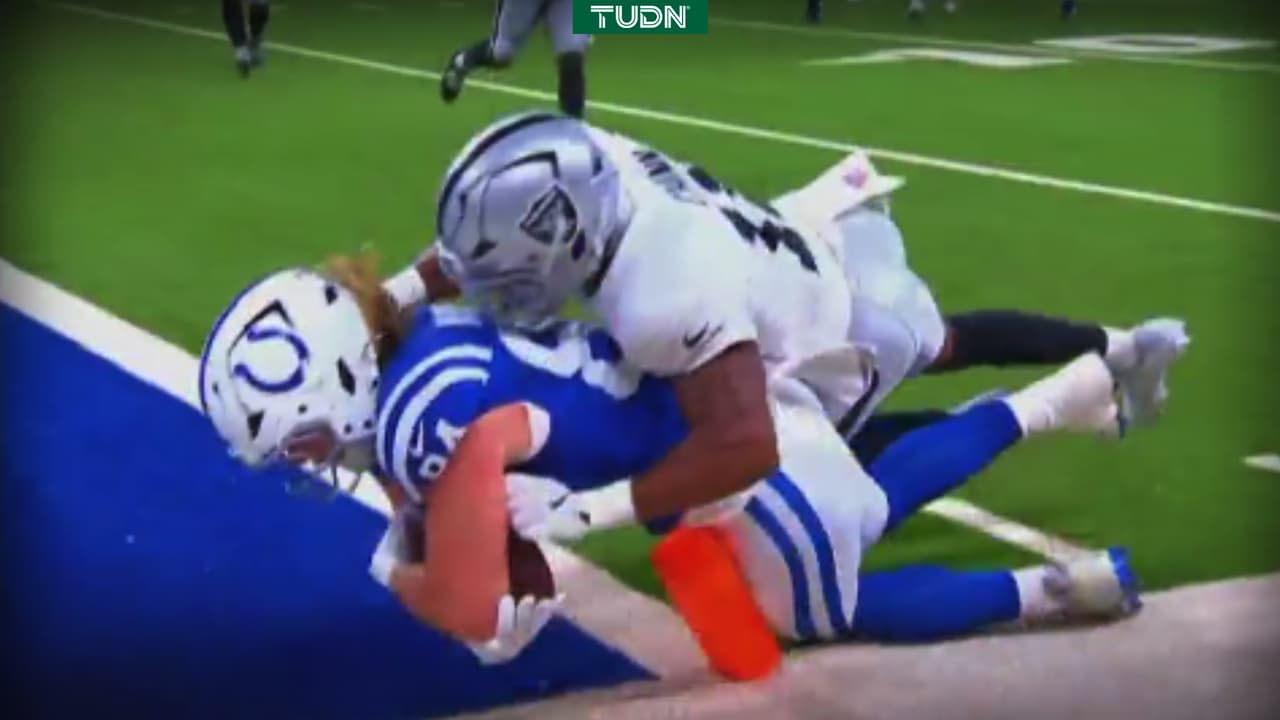 Indianapolis se pone adelante de Las Vegas Raiders con este pase de Daniel Jones con su ala cerrada.