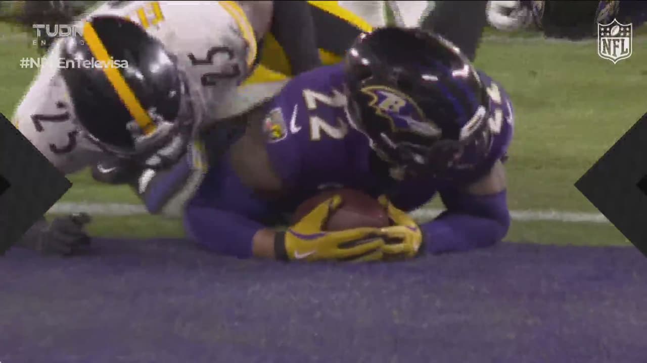 El corredor de Baltimore se hizo presente en el marcador con el acarreo corto, pero poderoso que amplió la ventaja en el segundo cuarto sobre los Steelers.