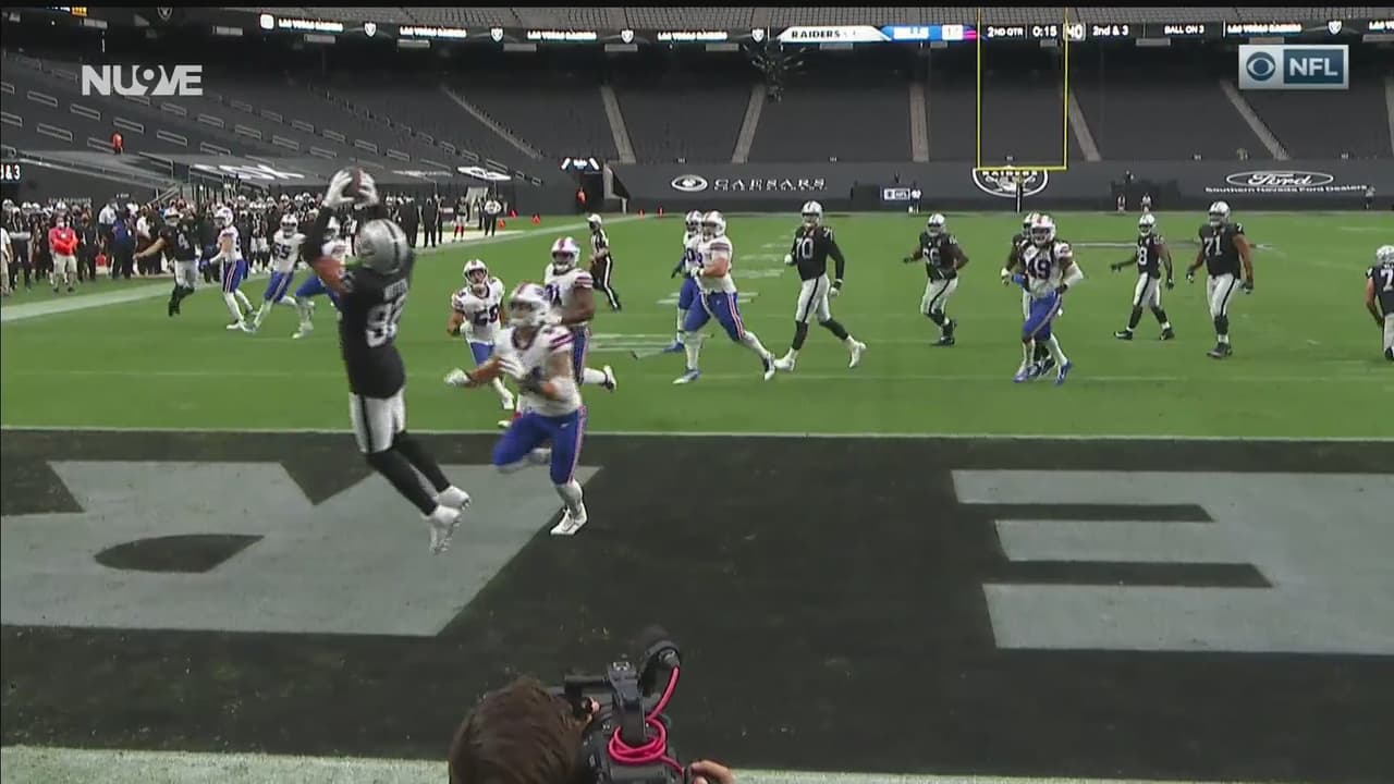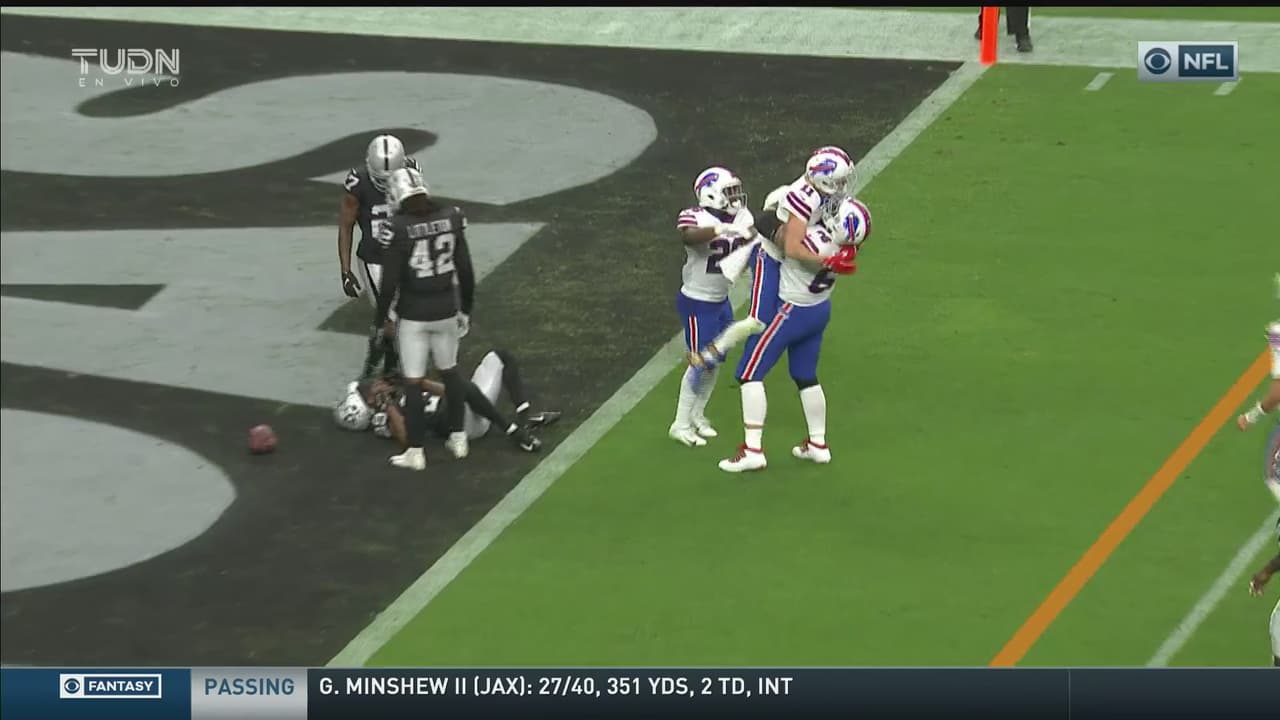 Las Vegas Raiders tuvo muchos problemas para mover el balón a la ofensiva y se toparon ante una sólida y férrea defensiva de los Bills que les provocó tres fumbles, pero una de las mejores jugadas de Derek Carr fue cuando encontró al veterano Jason Witten en las diagonales.