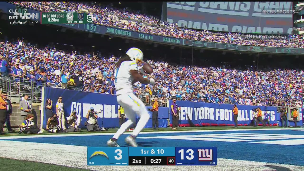 El receptor tiene atrapada para concretar la anotación de 36 yardas para Los Angeles sobre Giants.