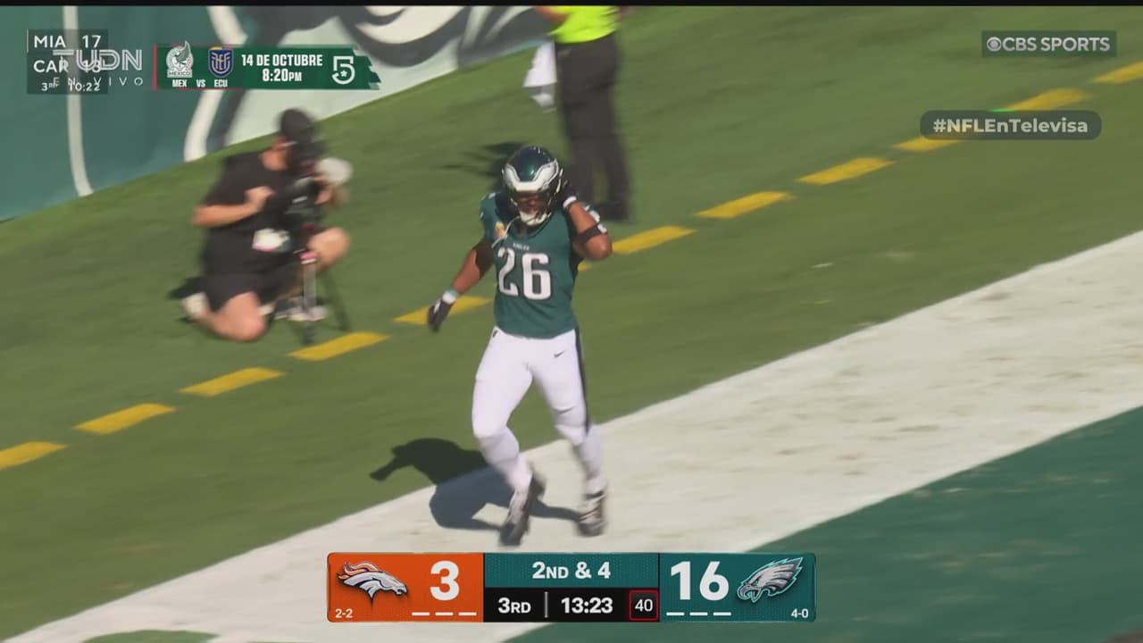 Philadelphia Eagles aumenta la ventaja ante Denver Broncos con este pase de 47 yardas.