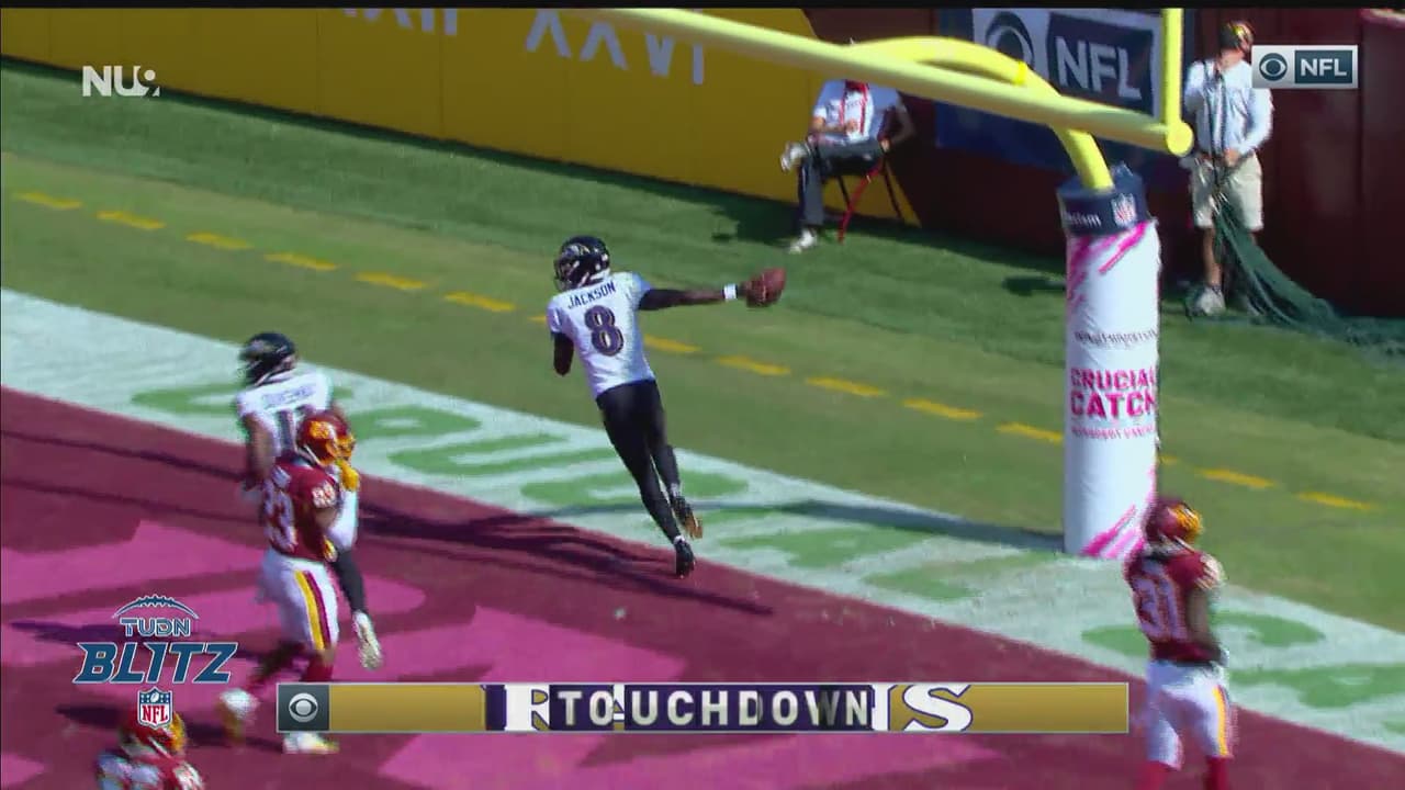 El QB de Ravens encontró un espacio y gracias a su velocidad nadie de Washington lo pudo alcanzar.
