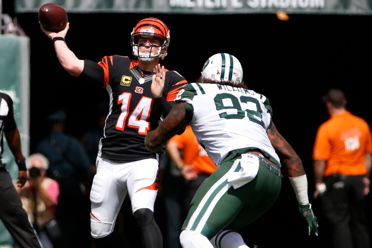 El quarterback Andy Dalton tuvo una buena tarde en Nueva York completando 23 de 30 envíos para un total de 366 yardas y un touchdown que fueron suficientes para amarrar la victoria del equipo de Marvin Lewis.