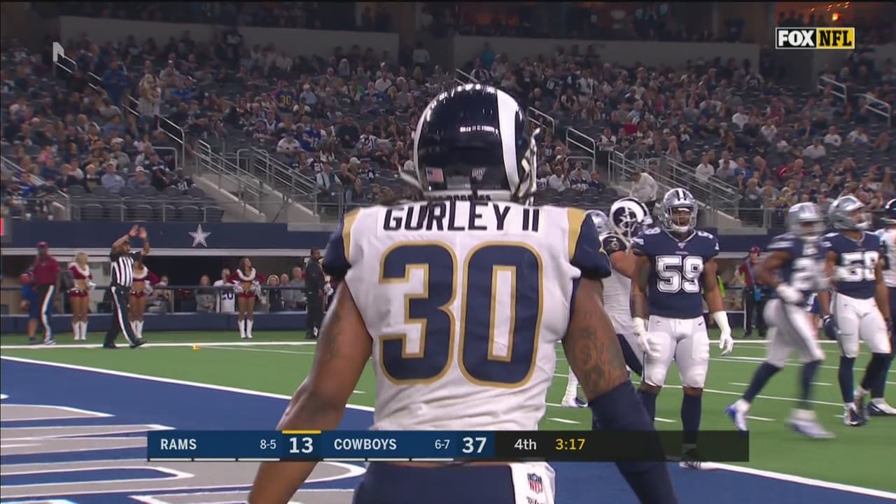 Todd Gurley consiguió su segundo touchdown del juego y además la conversión para acercar a los Rams 15-37 ante los Cowboys, que en la siguiente ofensiva lograron una anotación más por conducto de Tony Pollard, quien se escapó 44 yardas y Dallas se colocó 44-15.