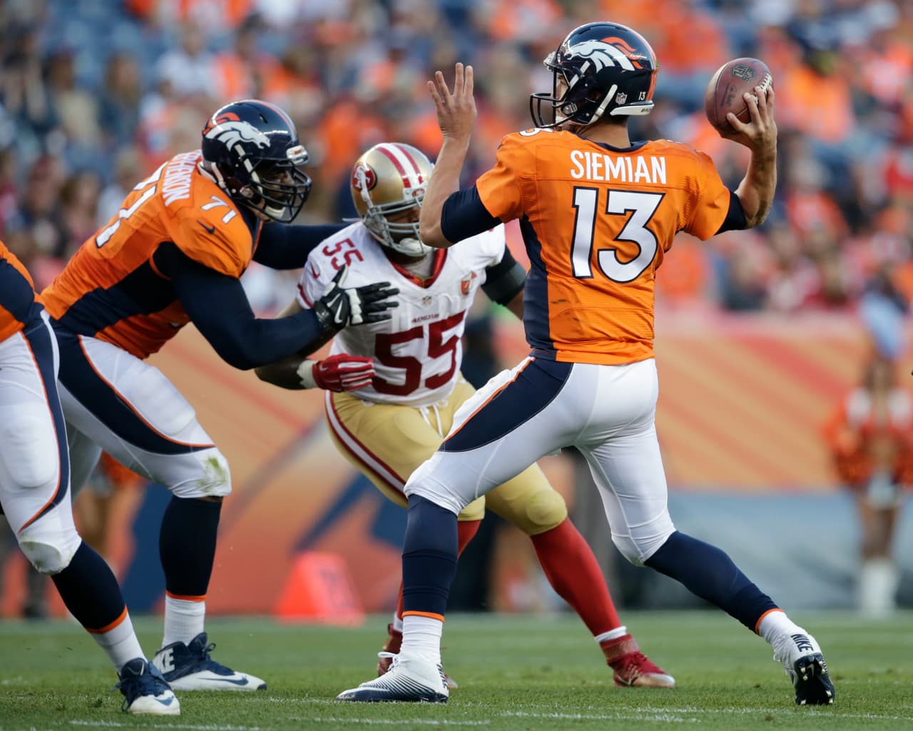 Siemian es el único de los tres que cuenta con experiencia de jugar con los Broncos, factor que por el momento le da ventaja en la carrera por la titularidad. Pero Sánchez es el veterano que ha tenido actividad durante 7 temporadas en la NFL, aunque acaba de llegar a Denver.