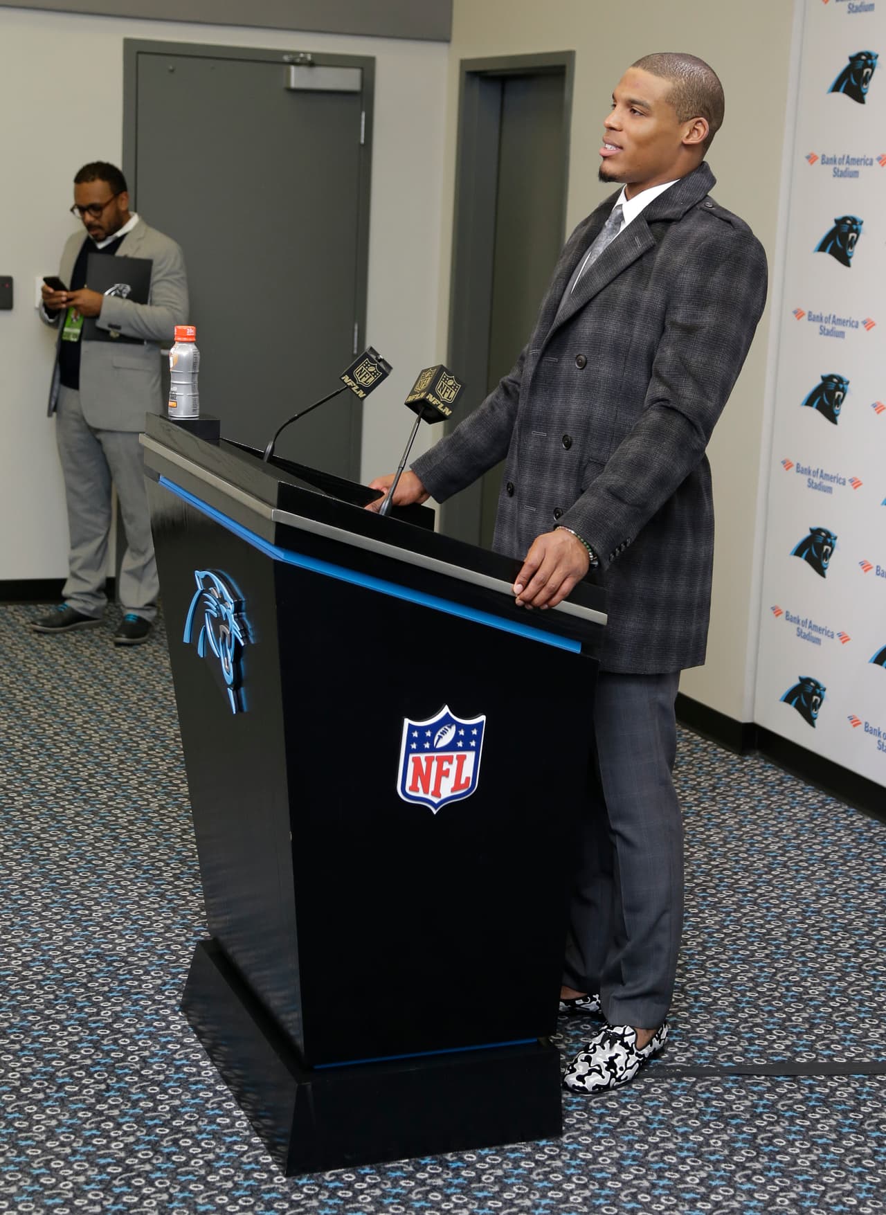 Cam Newton: ¡Qué onda hermanos! Soy su amigo ‘SúperCam’, no traje la capa roja porque no me dejaron pero quiero ponerle un poco de diversión a este juicio, denme un segundo, me tomo una selfie aquí en el estrado. Ya en serio, como yo entiendo el concepto del ‘Quarterback Dorado’ es alguien especial y nadie ha sido tan especial esta temporada como yo, es hora de cambiar paradigmas hermanos, yo no solo puedo hacer las cosas que los venerables señores Brady y Manning hicieron en el pasado, yo merezco ser el ‘Quarterback Dorado’ porque represento la evolución de la posición, como nadie en la historia conseguí 35 pases de touchdown y 10 acarreos anotadores en una temporada, tenemos que dar un mensaje moderno a los aficionados y yo soy la imagen que se requiere, yo soy el ‘Quarterback Dorado’ de nueva generación. ¡Paz!