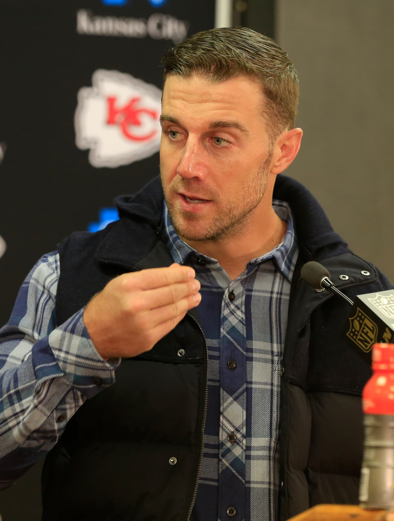 Alex Smith: Ya se lo que todos ustedes están pensando conmigo aquí, que no pertenezco a este lugar, pues se equivocan, Ben estás muy equivocado, tú no has jugado en ningún equipo dorado, el único de nosotros ocho que ha jugado en los dos equipos dorados soy yo, primero en San Francisco, donde nació la fiebre del oro, donde se juega este año el Super Bowl y donde yo debo ser el ‘Quarterback Dorado’ para darle una lección a los que se deshicieron de mí y ahora juego en Kansas City, el equipo del dueño al que se le ocurrió todo esto, pero está bien quieren algo que sea de actualidad, nada más les digo que dirijo al equipo con la mejor racha y que esto no es de merecer es de ser y hoy yo soy el ‘Quarterback Dorado’.