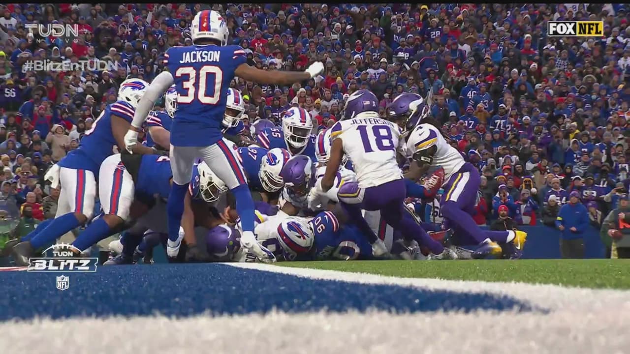 Pero eso no impidió que los Vikings anotaran. La defensa de Minnesota luego forzó un balón suelto y recuperó el balón en la zona de anotación de Buffalo para conseguir un touchdown con 48 segundos restantes.