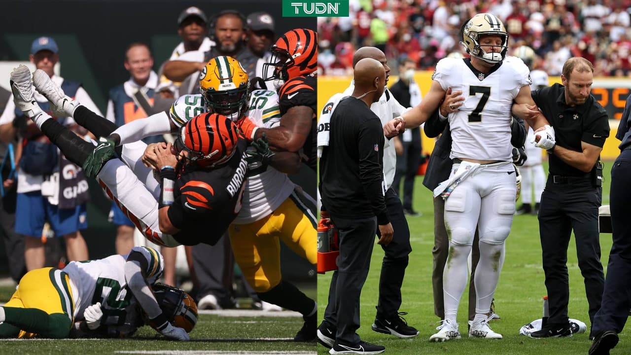 Tras 65 jugadas a la ofensiva, Joe Burrow sufrió un duro golpe en el partido y se reportó que fue llevado al hospital para revisarlo porque será evaluado por una posible contusión de garganta, de acuerdo a información del equipo.