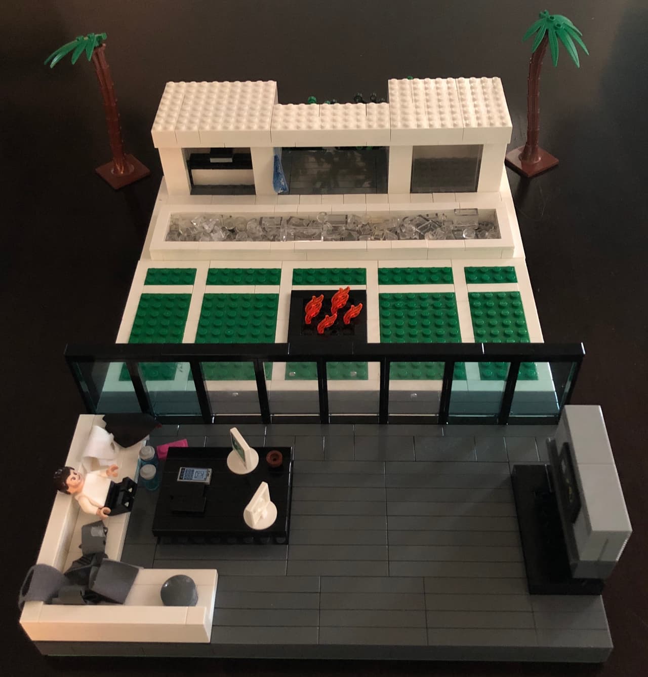 A decir verdad, la réplica en Lego está tan bien hecha que incluso se alcanzan a apreciar las llamas del pozo de fuego del jardín de la casa de Kingsbury, así como las palmeras que adornan ese extenso patio.