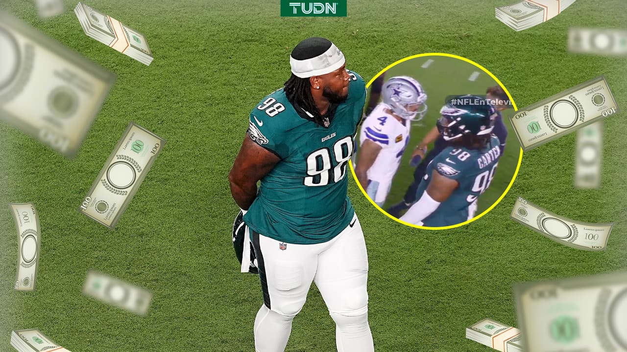 Si bien no llegaron a los golpes, el tacle defensivo de los Eagles lanzó un escupitajo al mariscal de campo de los Cowboys y de inmediato fue expulsado del encuentro con sólo seis segundos consumidos en el reloj dentro del partido de la Semana 1.