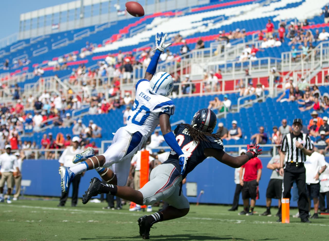 Desde su posición de safety fuerte realizó 312 tackleadas en su carrera colegial, cifra espectacular pero que también refleja un trabajo débil de los linieron y linebackers en la defensiva en Middle Tennessee St. Fue líder en intercepciones con 19 entre los jugadores graduados elegibles para el Draft.
