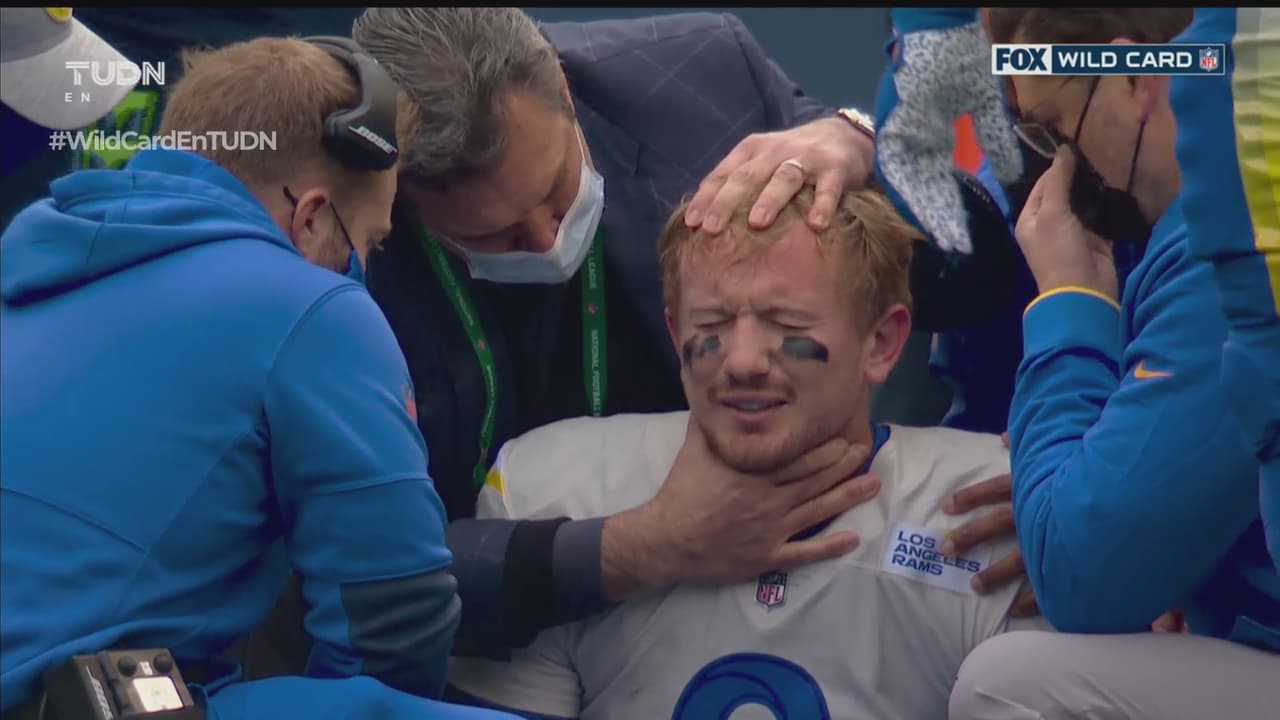 Aaron Donald también terminó yendo a los vestidores por una lesión en las costillas y tras dos capturas en el encuentro se despidió del juego.