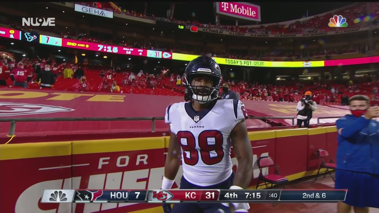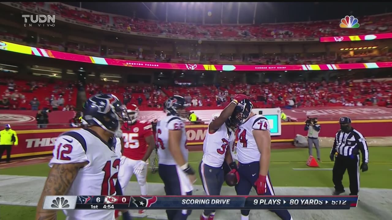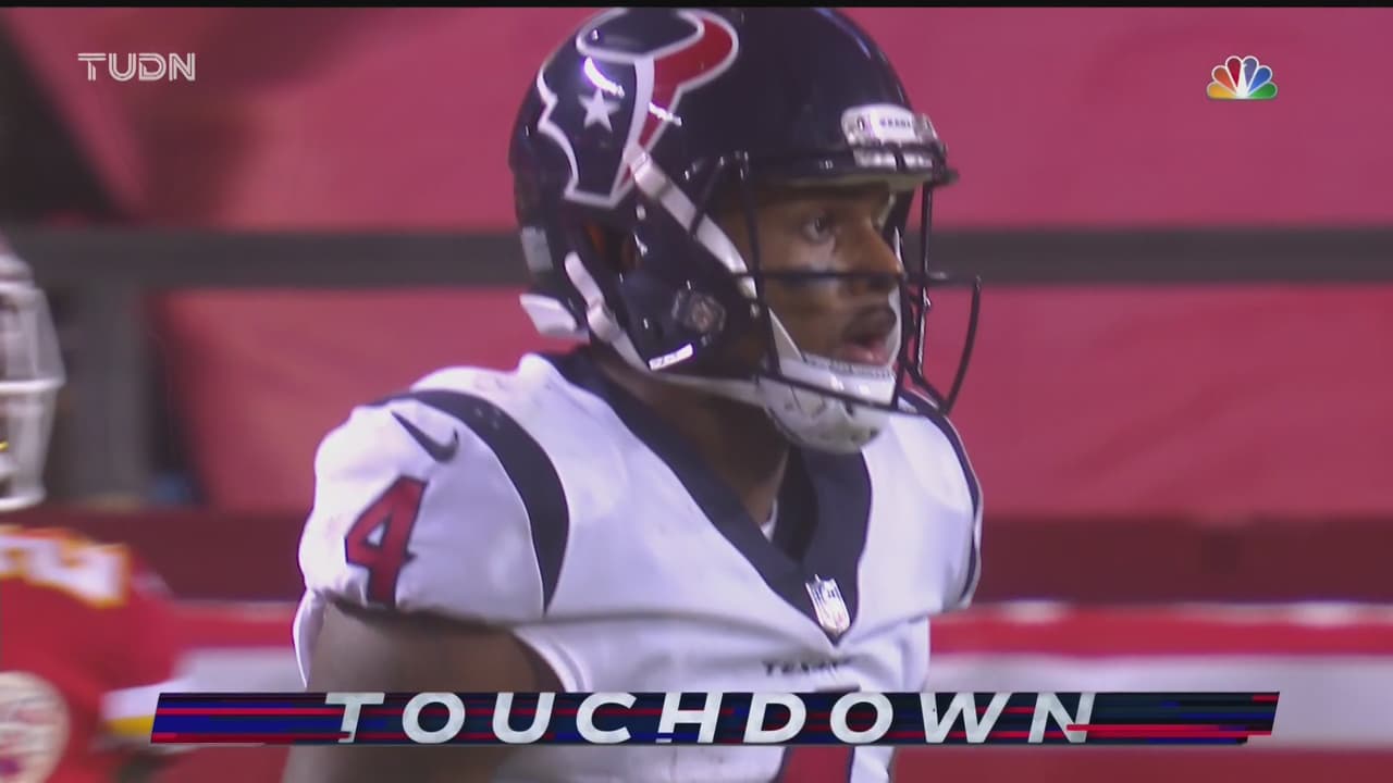 Después de 31 puntos consecutivos de los Chiefs, lograron conectar los visitantes y Watson logró encontrar en un pase espectacular a Akins para completar 19 yardas y seis puntos más, lo malo es que cuando quisieron la conversión, no les salió y el marcador se quedó en 13-31.