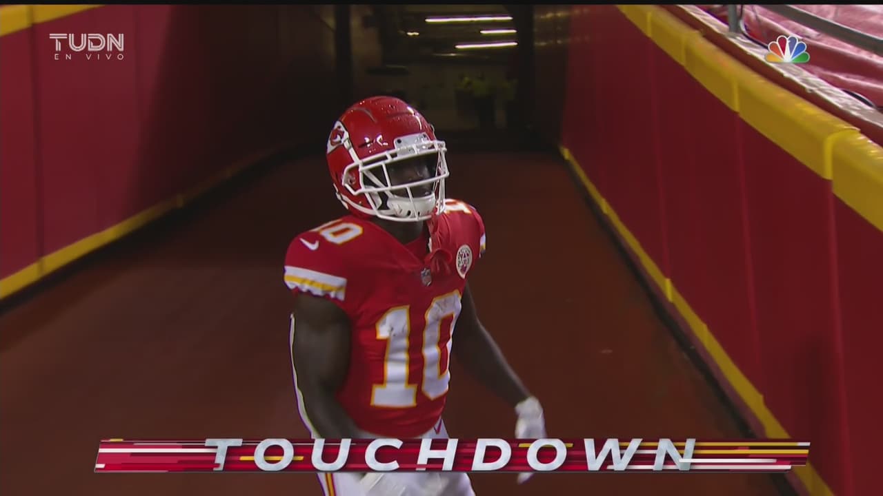 De inmediato Patrick Mahomes volvió a mostrar sus habilidades, lanzando un balón casi imposible para encontrar los números de Tyrek Hill y seguir inflando la diferencia en el marcador y con 7-31.