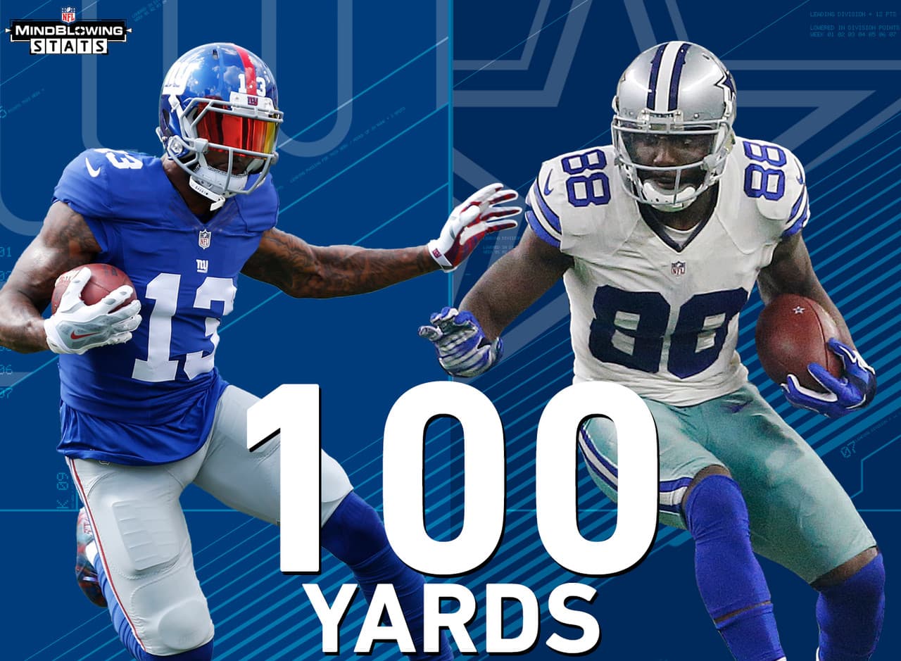 Odell Beckham Jr. está rompiendo los números como receptor en apenas sus primeros dos años en la NFL. Ya cuenta con 15 partidos de más de 100 yardas en su carrera, cifra increíble debido a que apenas ha jugado 27 encuentros. Dez Bryant, de los Cowboys, también tiene 15 partidos con más de 100 yardas, pero en 86 juegos en la NFL.