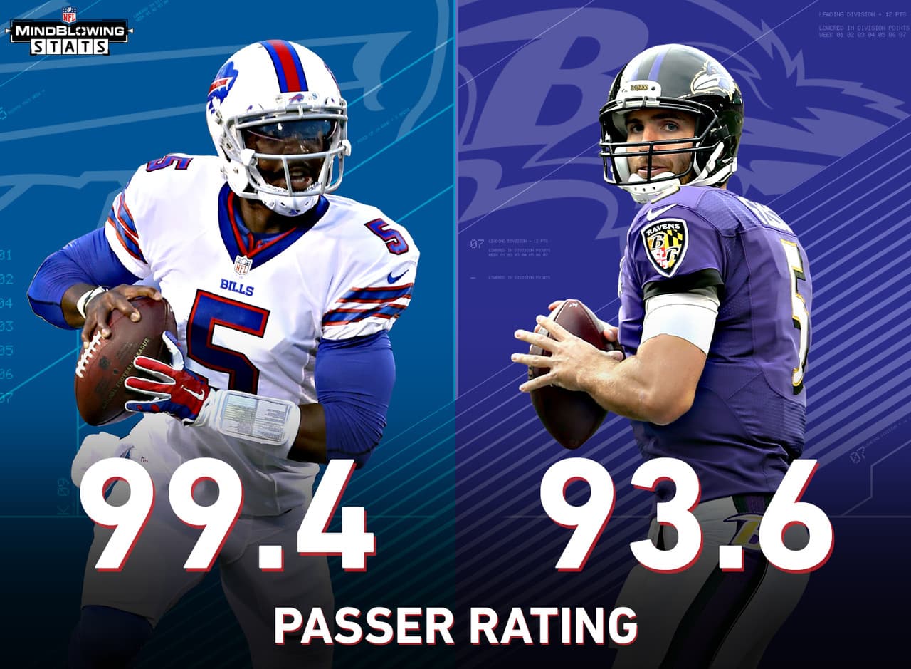 En 2015 Tyrod Taylor, de Buffalo Bills, registró rating de 99.4 como pasador. Superó el mejor rating que Joe Flacco ha tenido en su carrera con Baltimore Ravens: 93.6 en el año 2010. Hay que recordar que Taylor fue seleccionado por los Ravens en 2011, pero decidieron quedarse con Flacco.