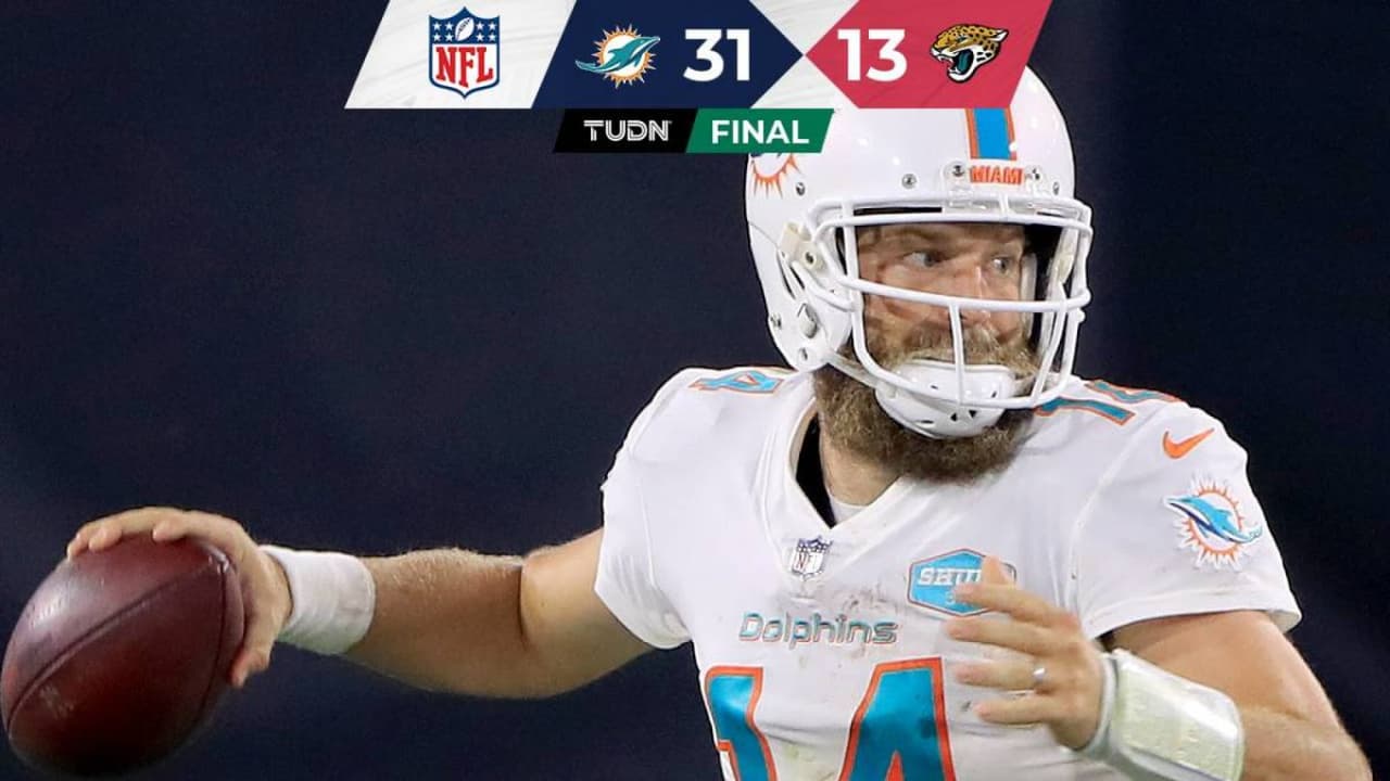 Ryan Fitzpatrick guió a los Miami Dolphins a la victoria 31-13 sobre los Jacksonville Jaguars en el arranque de la semana 3 en la NFL. Gardner Minshew trató de remontar, pero le fue imposible.