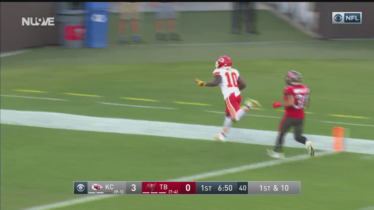 La dupla de Kansas City siguió la carnicería contra Tampa Bay y volvió a surtir efecto con pase de Mahomes para Hill que capitalizó Cheeta con carrera mosntruosa a la zona de anotación.