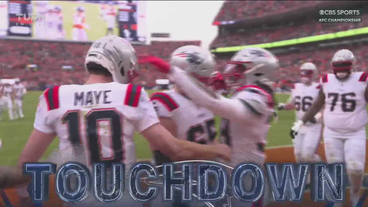 Patriots aprovecha el error de Jarrett Stidham y Drake Maye anota por tierra para el empate.