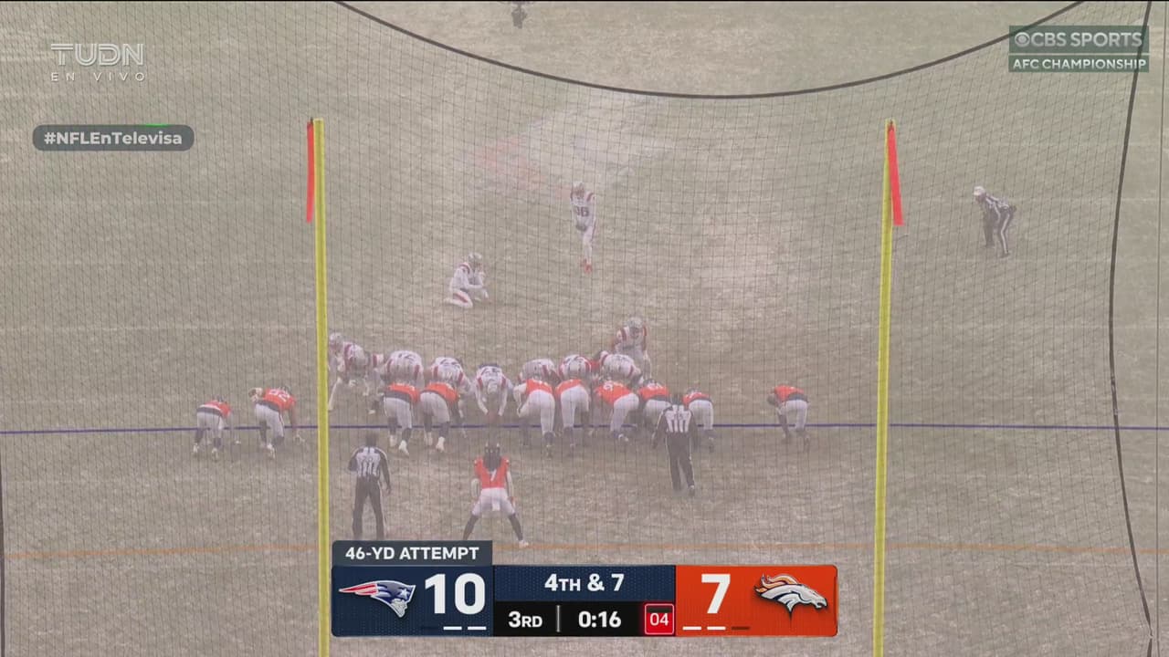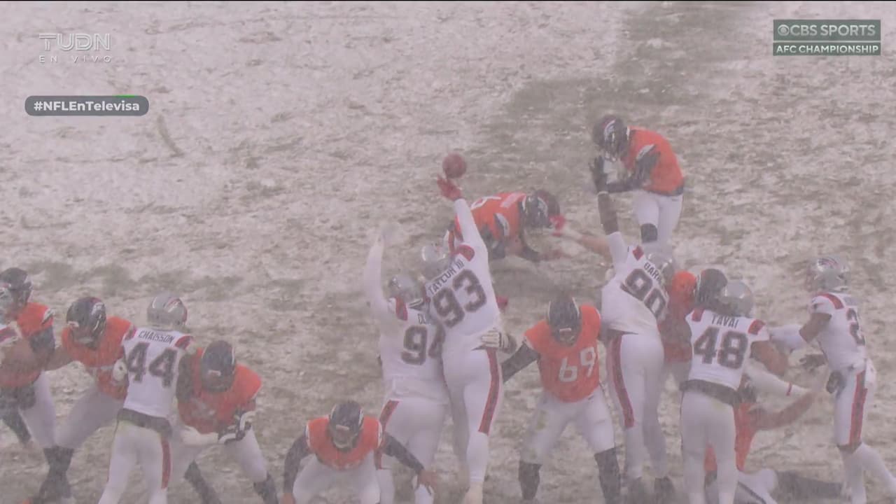 Se le escapan tres puntos a los New England Patriots por la dura nevada en Denver, este de 46 yardas.
