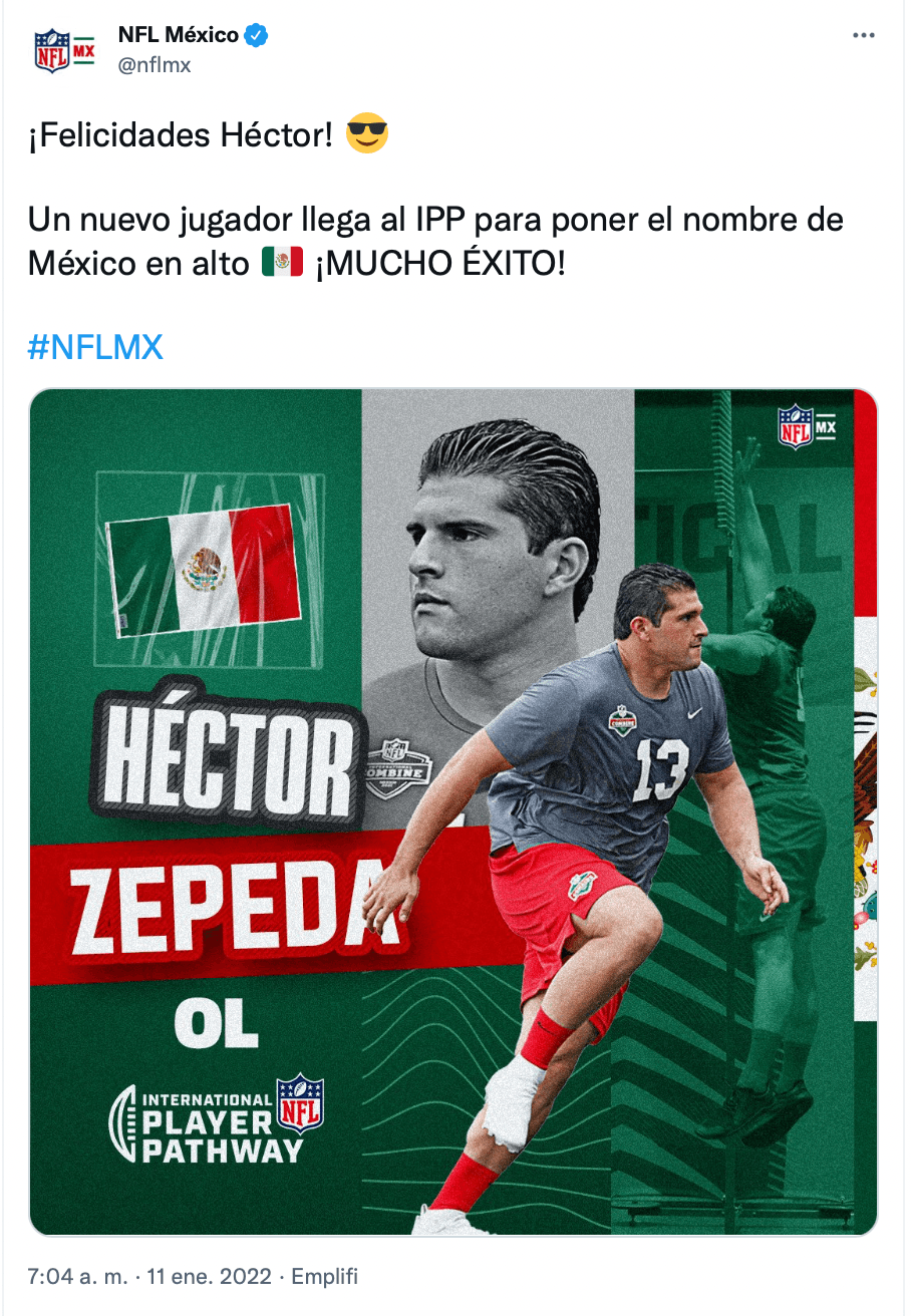 El mexicano Héctor Zepeda fue seleccionado por la NFL para competir por un lugar en la liga mediante el internacional Player Pathway (IPP) en este 2022.