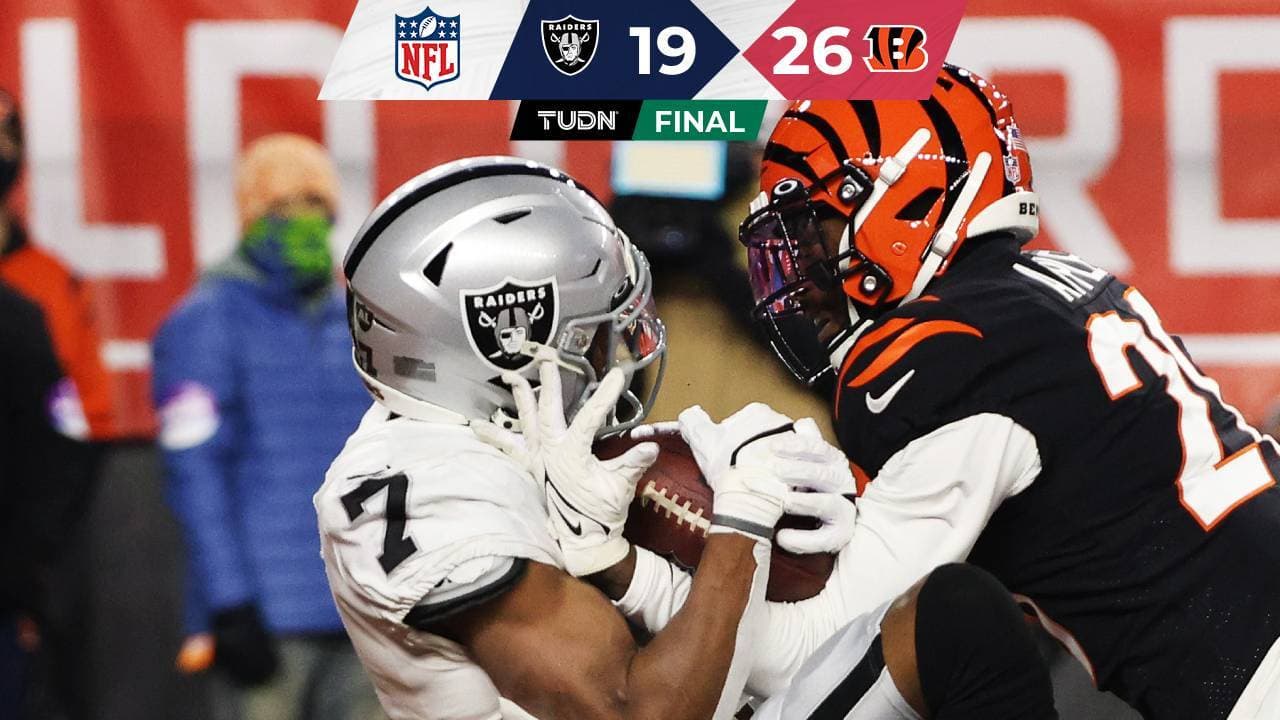 El final con presión infinita para Derek Carr lo llevó a avanzar y azotar el balón para detener el reloj y cuando lanzó el pase a Jons, pero Pratt se cruza y se quedó con el ovoide matando la posiblilidad. Burrow sólo tuvo que hincarse para acabar el juego y consagrar la victoria.
