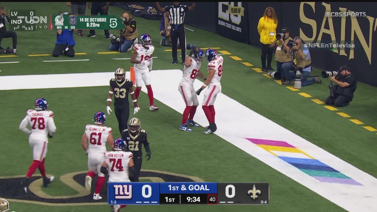 New York Giants se adelanta sobre New Orleans Saints con este pase a Theo Johnson en las diagonales.