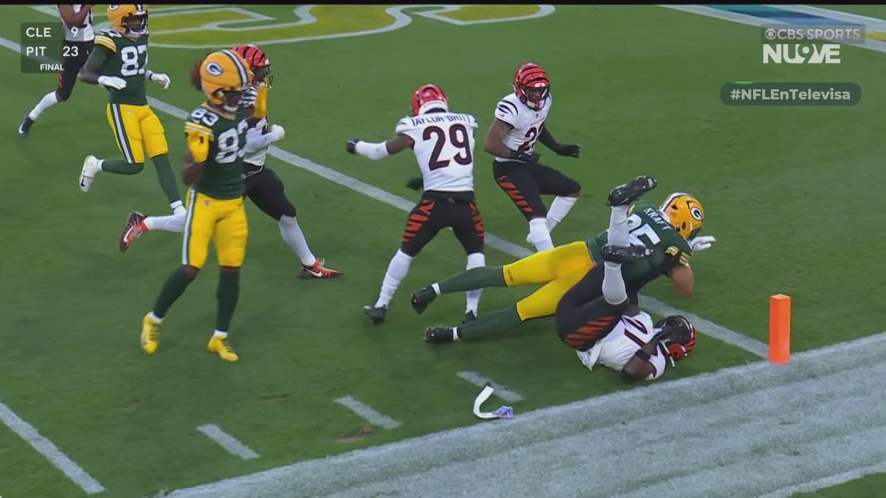 El ala cerrada de Green Bay hizo una jugada grande y aguantó el castigo para el touchdown.