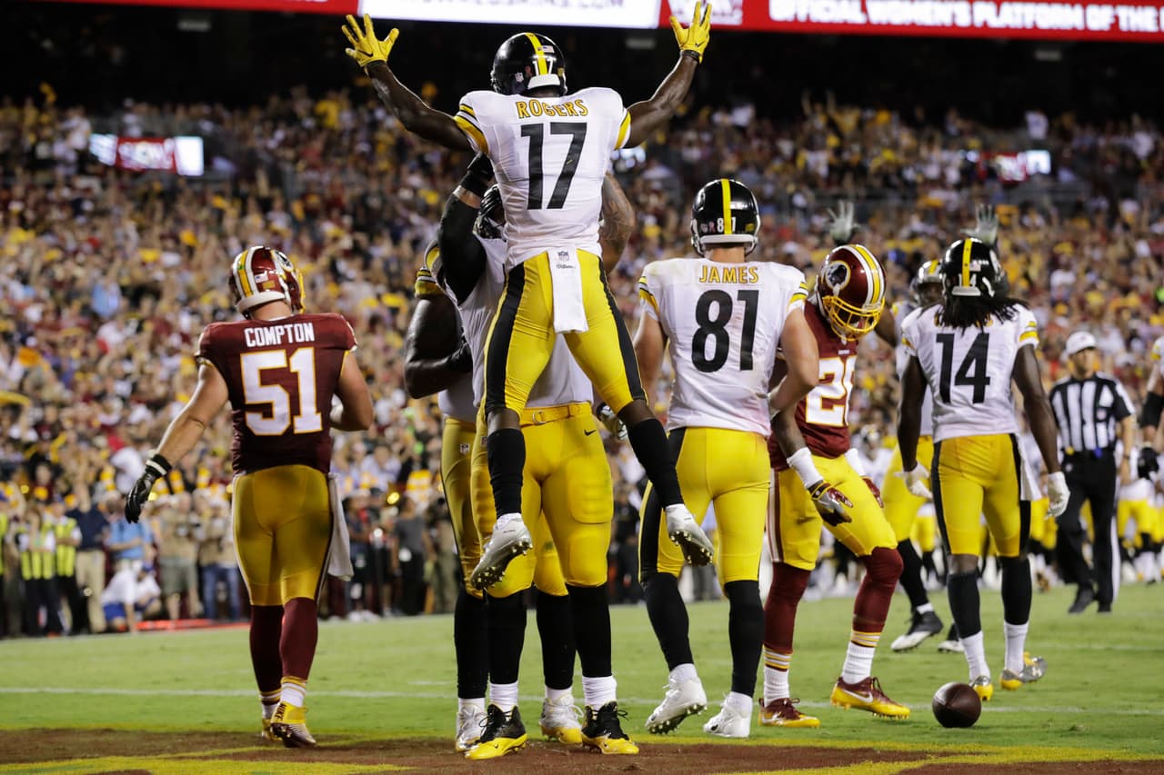 Washington se adelantó en el primer cuarto con dos goles de campo pero luego recibió 24 puntos sin respuesta incluidas dos anotaciones de Antonio Brown y el tercer pase de anotación de Ben Roethlisberger en conexión con el receptor de segundo año Eli Rogers.
