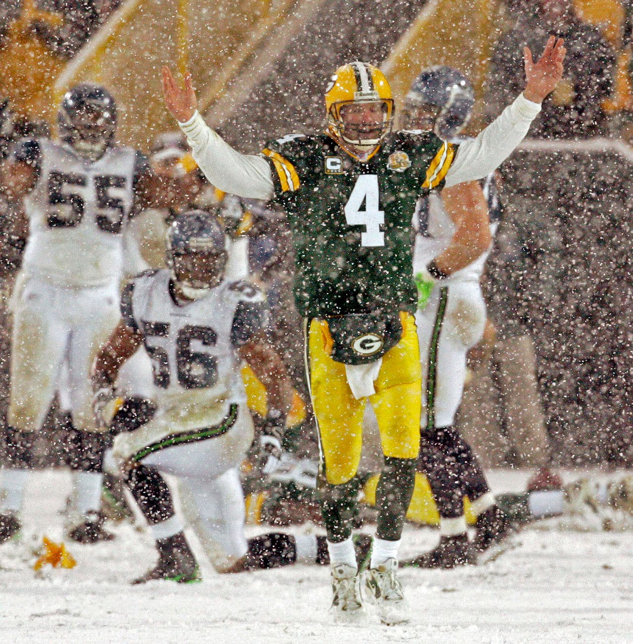 La última victoria de Brett Favre en playoff como Packer llegó con la hermosa imagen visual de una tormenta de nieve en el Lambeau Field. Favre lanzó tres pases de touchdown contra los Seahawks, pero no pudo mantener ese nivel de juego la siguiente semana, cuando los Packers fueron vencidos por los Giants en tiempo extra en el Juego por el Campeonato de la NFC.