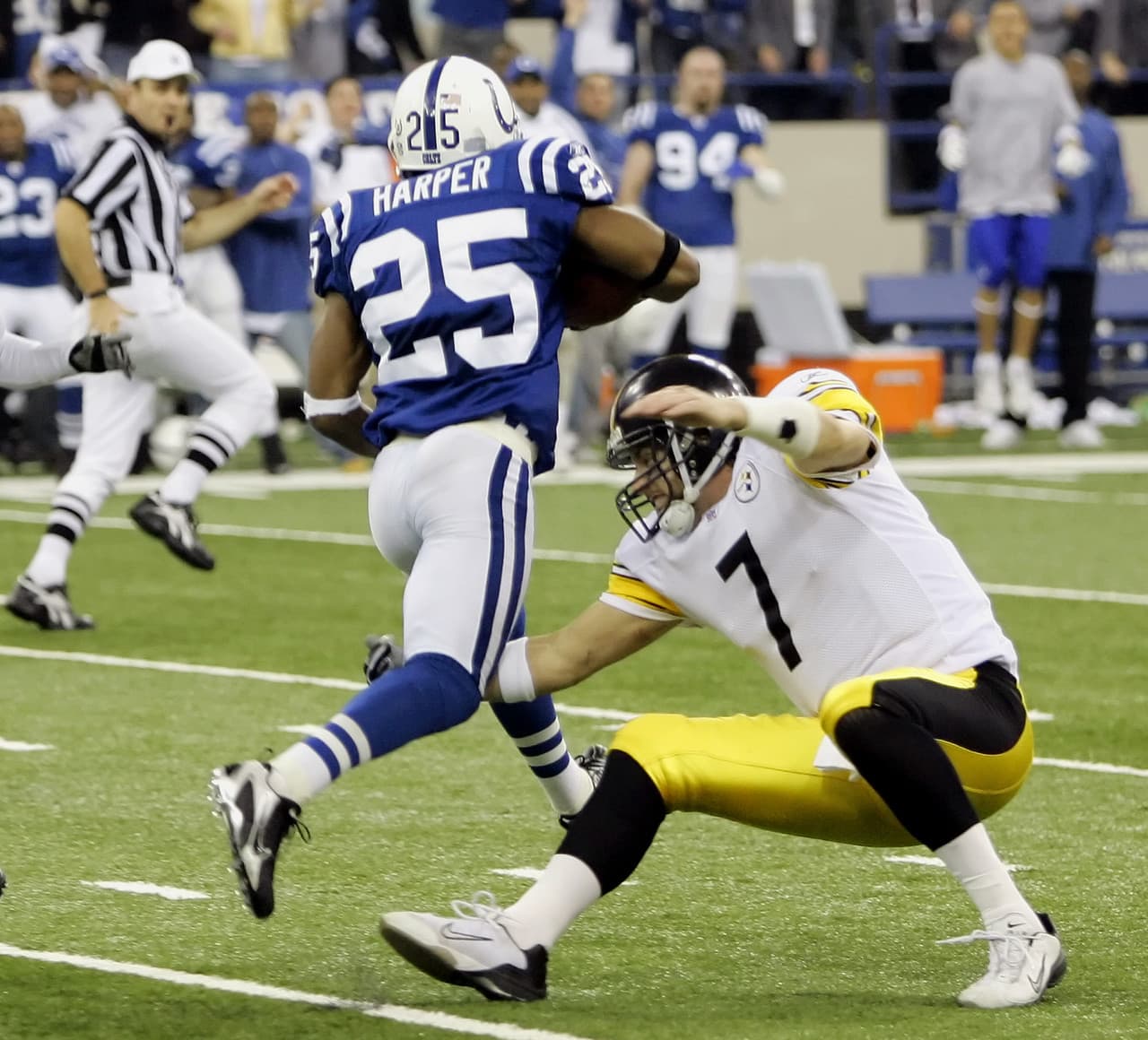 Ben Roethlisberger logró una gran jugada tras un balón suelto de Jerome Bettis en la línea de gol en la parte final de este partido. El quarterback logró tropezar al safety de los Colts, Nick Harper, alrededor del medio campo, salvando el touchdown. Los Colts solo pudieron avanzar a la yarda 28 de los Steelers para que luego el pateador Mike Vanderjagt fallara el potencial gol de campo del empate. Los Steelers se acabaron convirtiendo en el primer equipo sembrado sexto de su Conferencia en ganar el Super Bowl (XL) desde el modelo de 12 equipos de playoff que data de 1990.